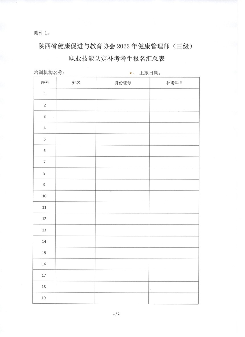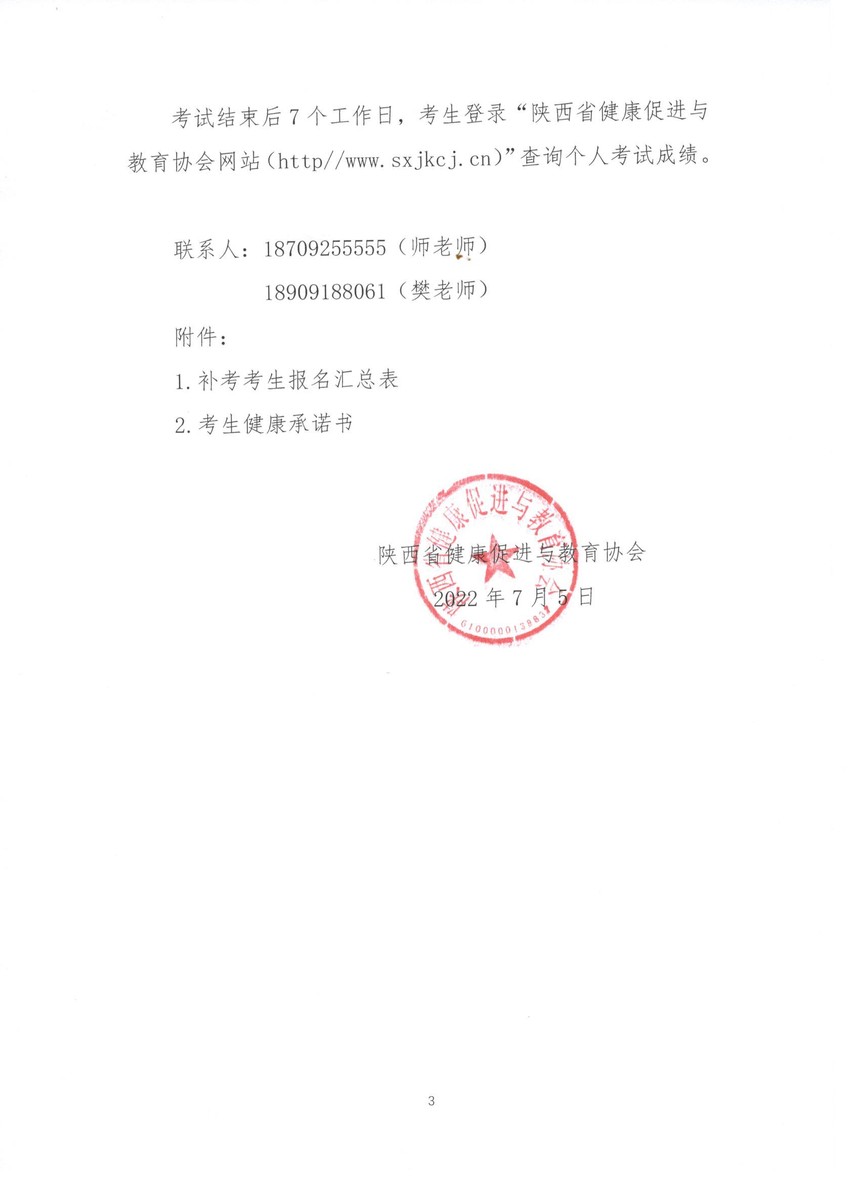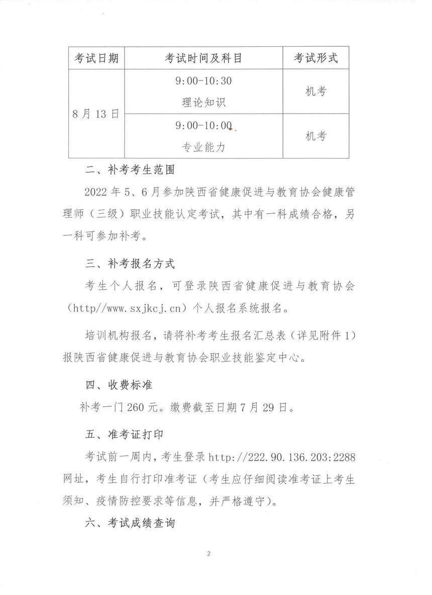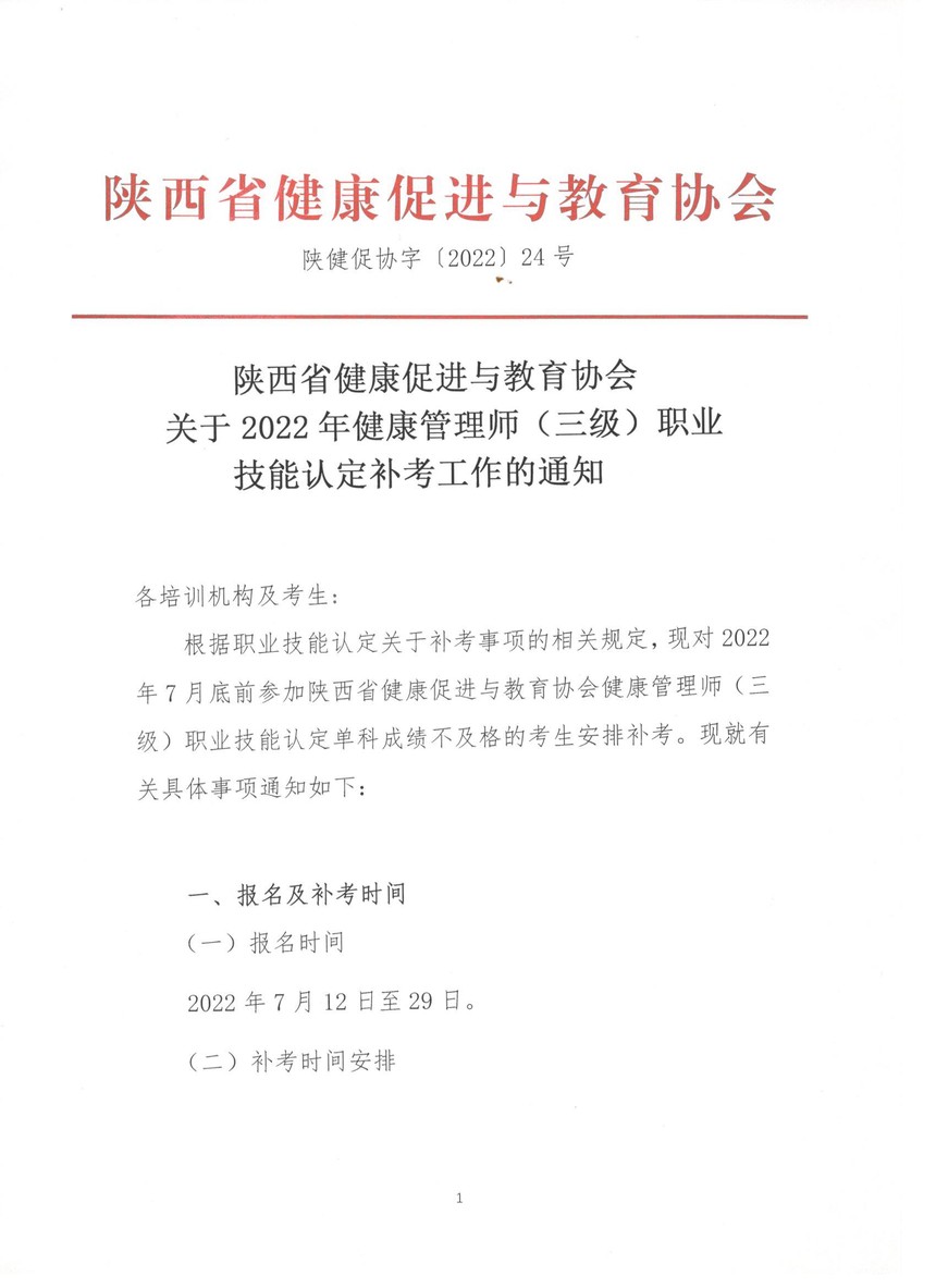 陕西省健康促进与教育协会 关于2022年健康管理师(三级)职业 技能认定补考工作的通知