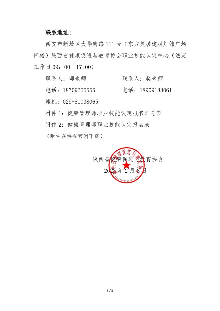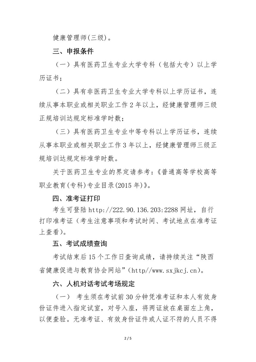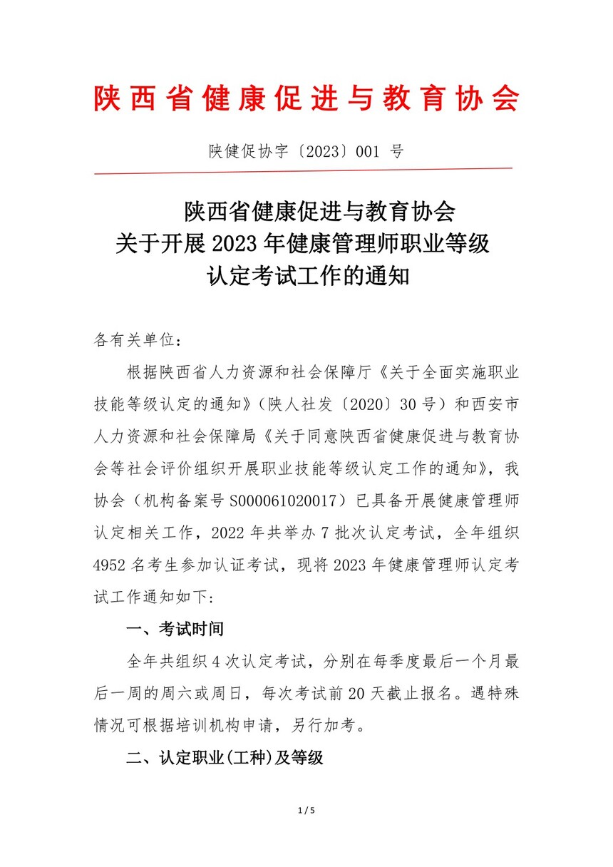 陕西省健康促进与教育协会 关于开展2023年健康管理师职业等级 认定考试工作的通知
