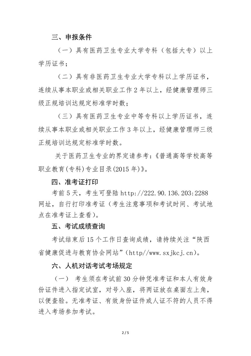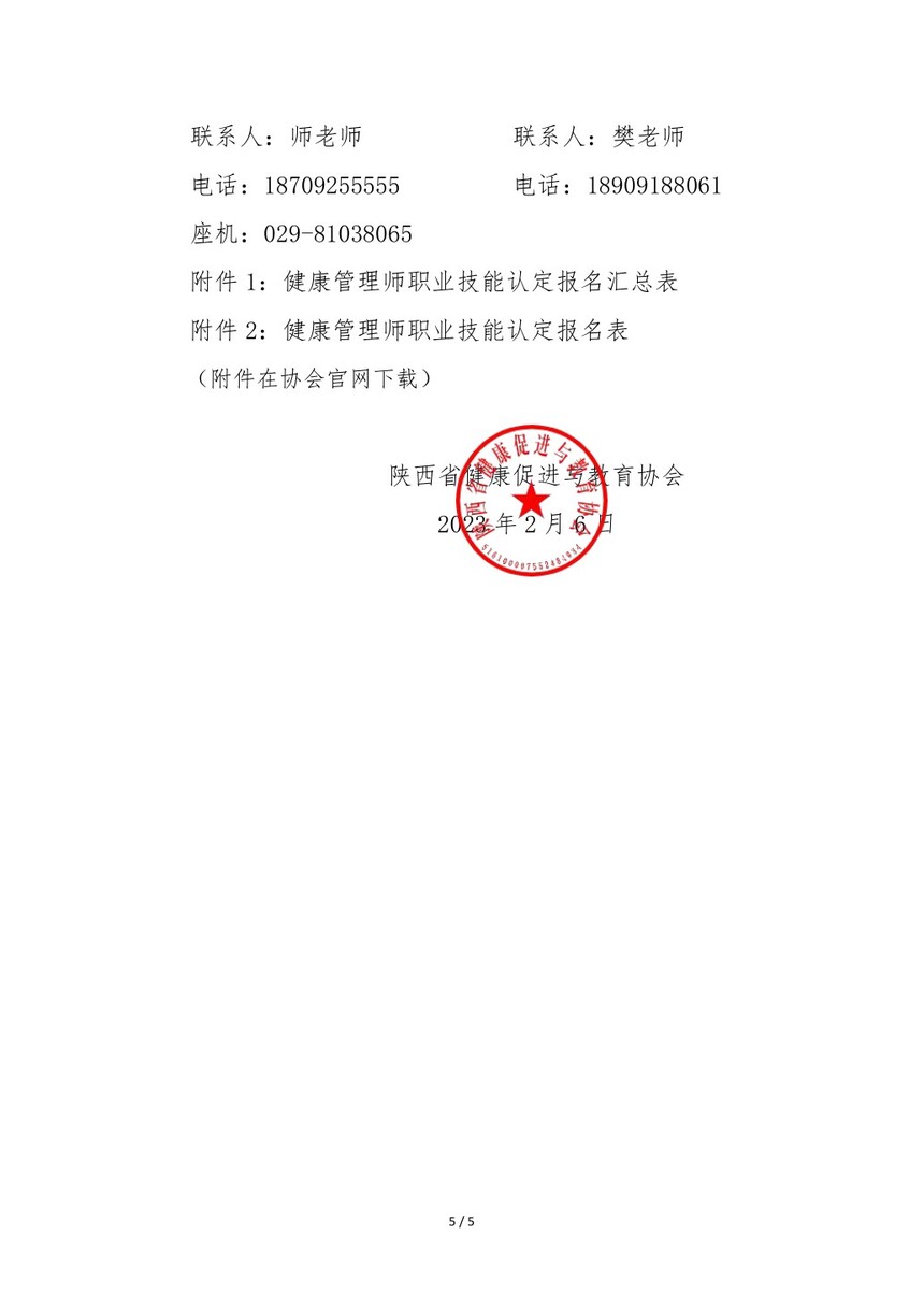 陕西省健康促进与教育协会 关于开展2023年第2批次健康管理师职业技能等级认定报名考试工作的通知